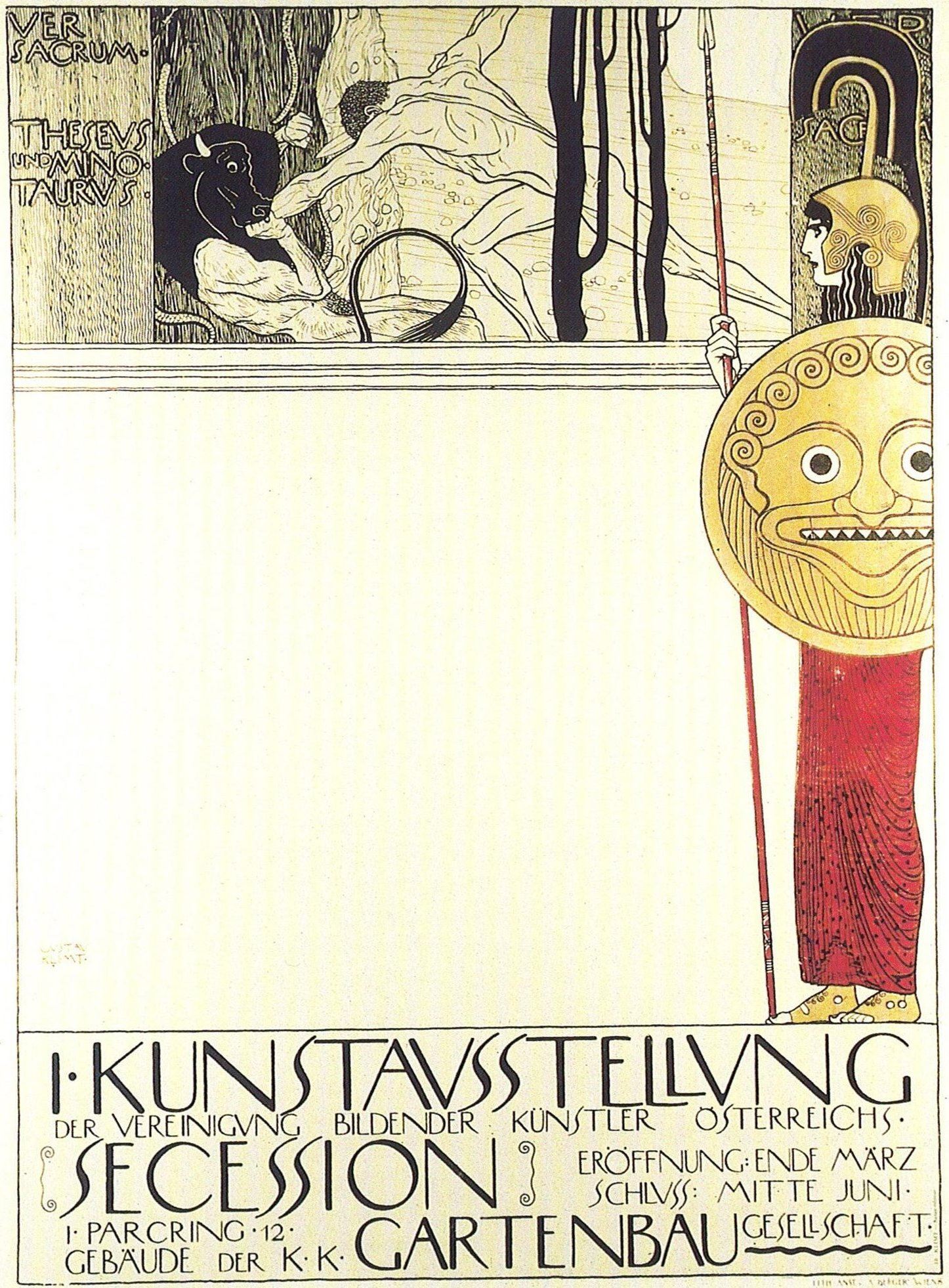 1898 The publication organ of the Secession began to publish Ver Sacrum magazine and the first exhibitions were opened. Klimt's Theseus and Minotauros poster and Pallas Athena, the symbol of the Sezession group, led to fierce controversy.