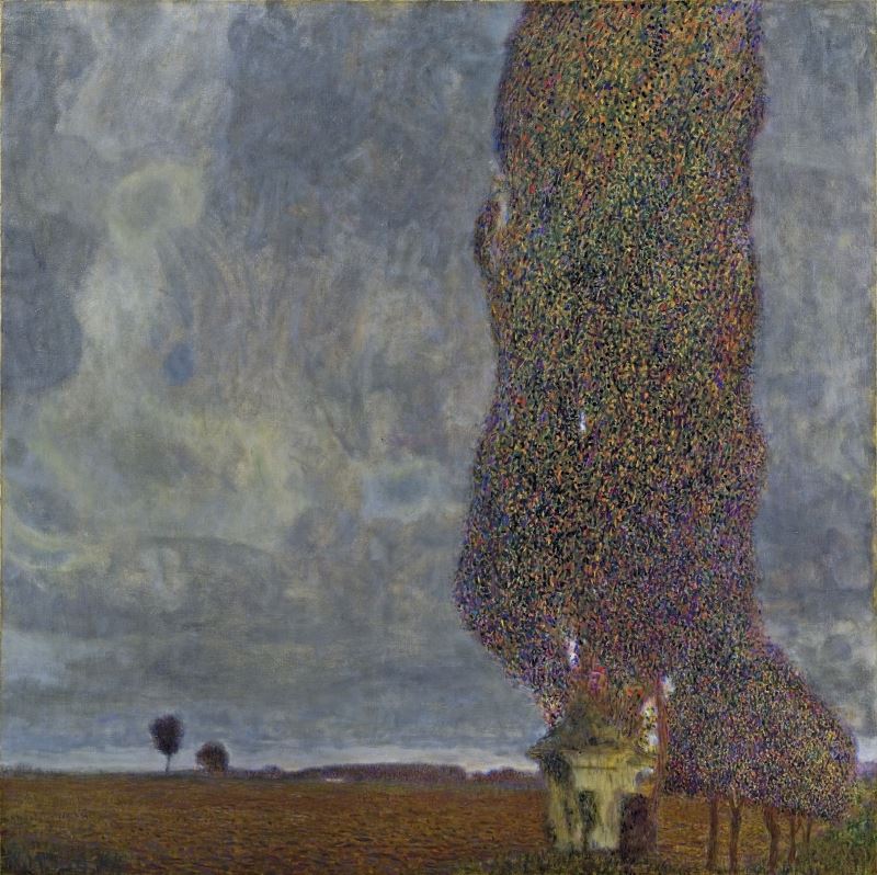 Klimt's landscape painting was also evolving. The methods used in the landscape paintings, which make up one-quarter of his paintings, were different from each other. The first period of the landscape paintings with a realistic color harmony had created a very detailed. In his later works, mosaic form works were attracted attention. In general, the horizon and the sky were almost completely lost in landscape paintings and no people were included. He also painted some landscapes, especially in his travels to the northern regions of Italy. In the last period of his landscape paintings between 1915 and 1918, he was directed to darker, monochrome influences instead of vivid colors. This was interpreted by critics as the explosion of World War I in 1914 and the loss of his mother in 1915.