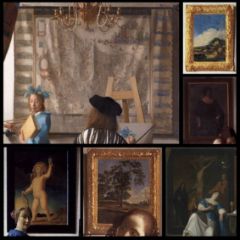 Johannes Vermeer's "Girl with the Red Hat" , "Officer and Laughing Girl" and "Girl with a Pearl Earring“ with his paintings, details, color transitions and brush strokes;
