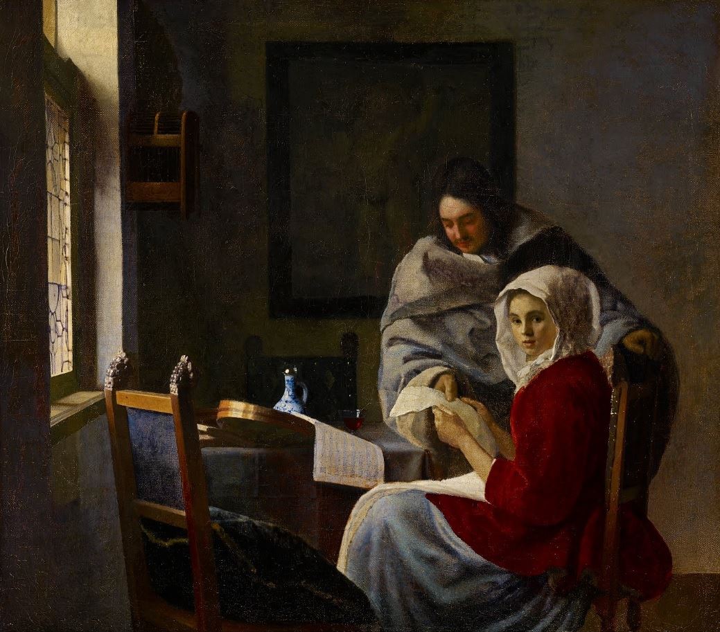 Detailed interior paintings had become Vermeer's favorite topic. He took his inspiration from the daily events of life. Vermeer's subjects were women who read letters in front of the window, wrote letters on the desk, gave concerts with a small harpsichord, played the lute, sewed, worn a necklace around the neck, looked out the window, or did a daily job. Some of his paintings have included a second woman, who is usually a servant. He rarely performed male figures. The figures were usually next to the window on the left, according to the viewer.