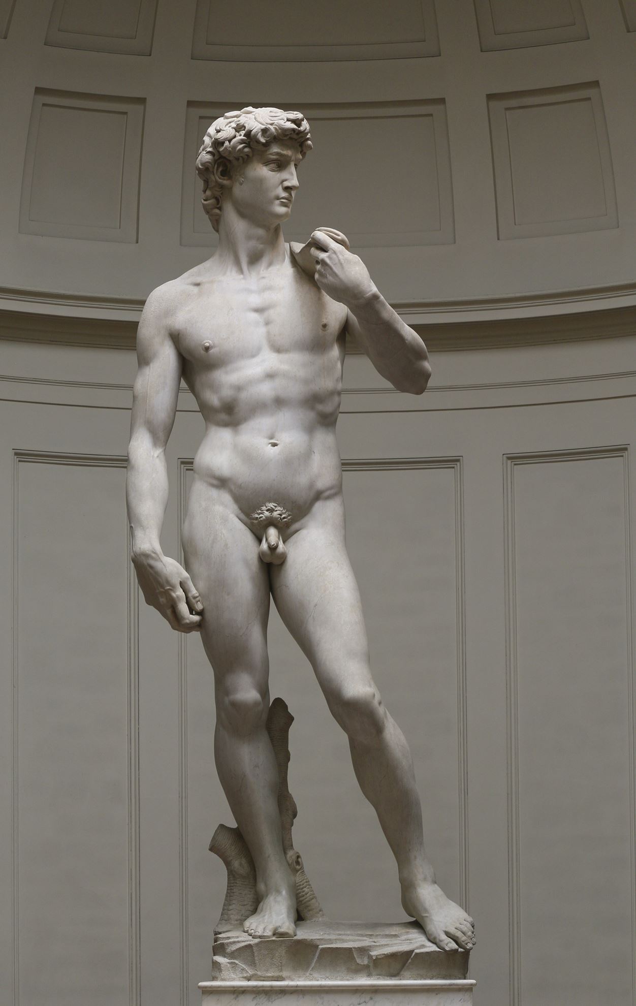In 1501 Michelangelo returned to Florence from Rome as a renowned, respected and successful artist. The Florentine rich city received a series of orders from nobles. Michelangelo's order, the two-circle relief, including the depiction of the "Virgin Mary" would be a study. This work was called "Tondo". (Tondo: A round picture or other work of art) In this period, He made the only Tondo-shaped single oil painting on the theme of "The Holy Family." In 1503, the Florence administration decided to build wall paintings in the large hall of the Palazzo Vecchio, which was used as a government building. The Palazzo Vecchio's large hall was planned to paint the city's historical subjects. The famous painter Leonardo da Vinci was commissioned to make the fresco of the Battle of Milan, which took place in Anghiari, south of Florence in 1440. For other wall work, Michelangelo was commissioned to make the fresco of the Battle of Cassina, which took place in Anghiari, south of Florence in 1364. Thus, two of the most famous artists of the period were assigned to work in the same space. Both were unable to complete their work. Then Michelangelo took the order of the statue of the splendid "David". The artist completed the giant four-meter-long giant "David" statue in 1504. This magnificent statue was the most important order of Michelangelo. Since antiquity, in this dimension, there was not a alone sculpture. The statue of "David" was portrayed in Florence as very different from all the works that had ever been done.