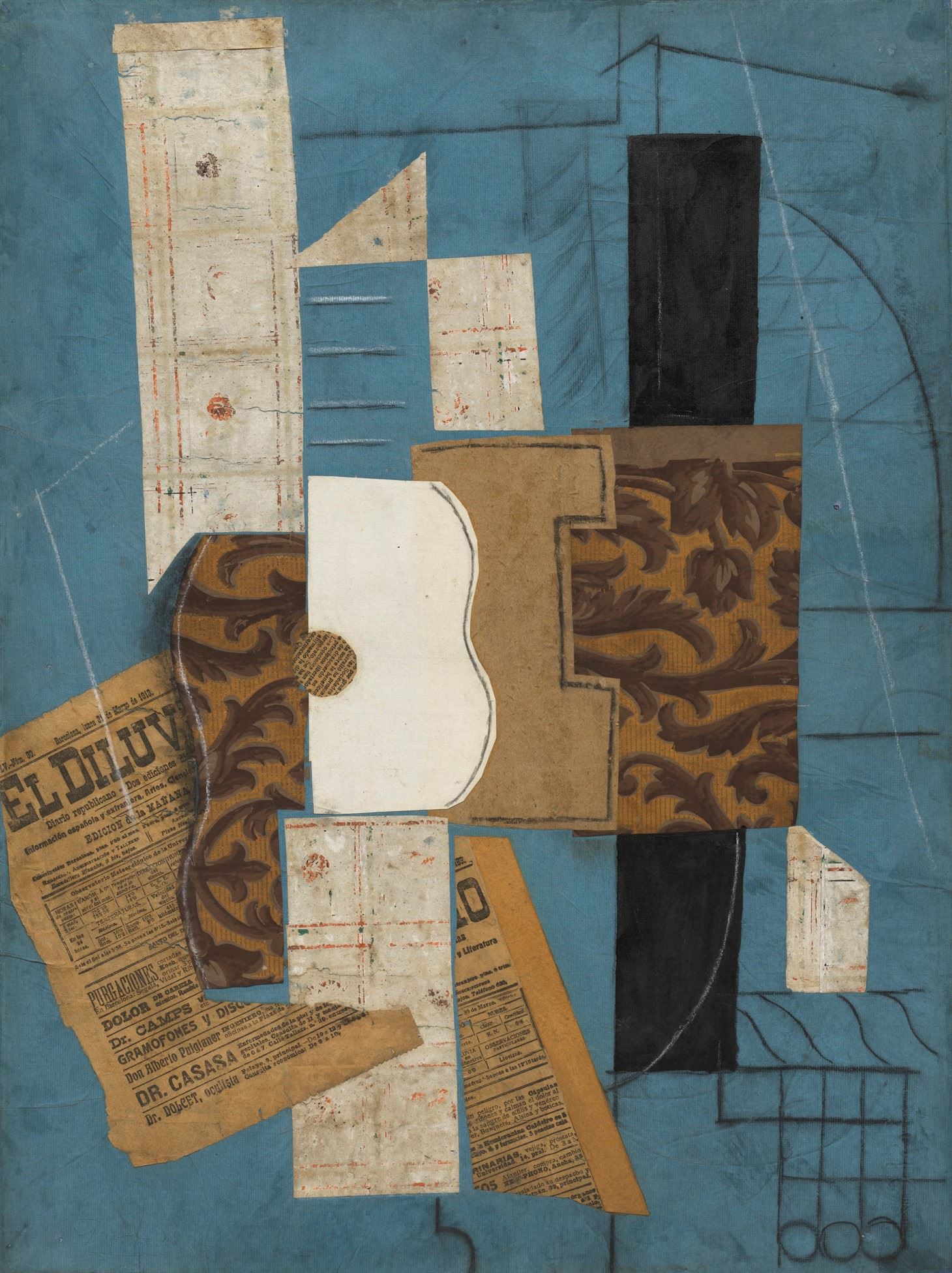 From 1912 onwards, synthetic cubism emerged. Picasso and Braque, including various objects of ordinary objects and they, created collages and assemblages combining fields made of paint on. With this combination, forms like guitar or bottle, which were similar to familiar objects, had emerged. Picasso had reached the end of his experiments in his 1915 painting "Violin".