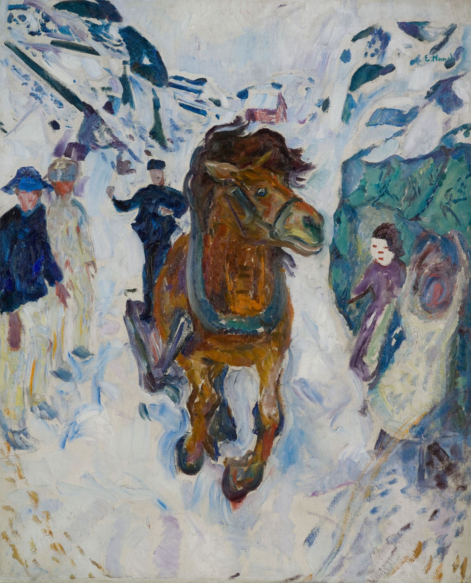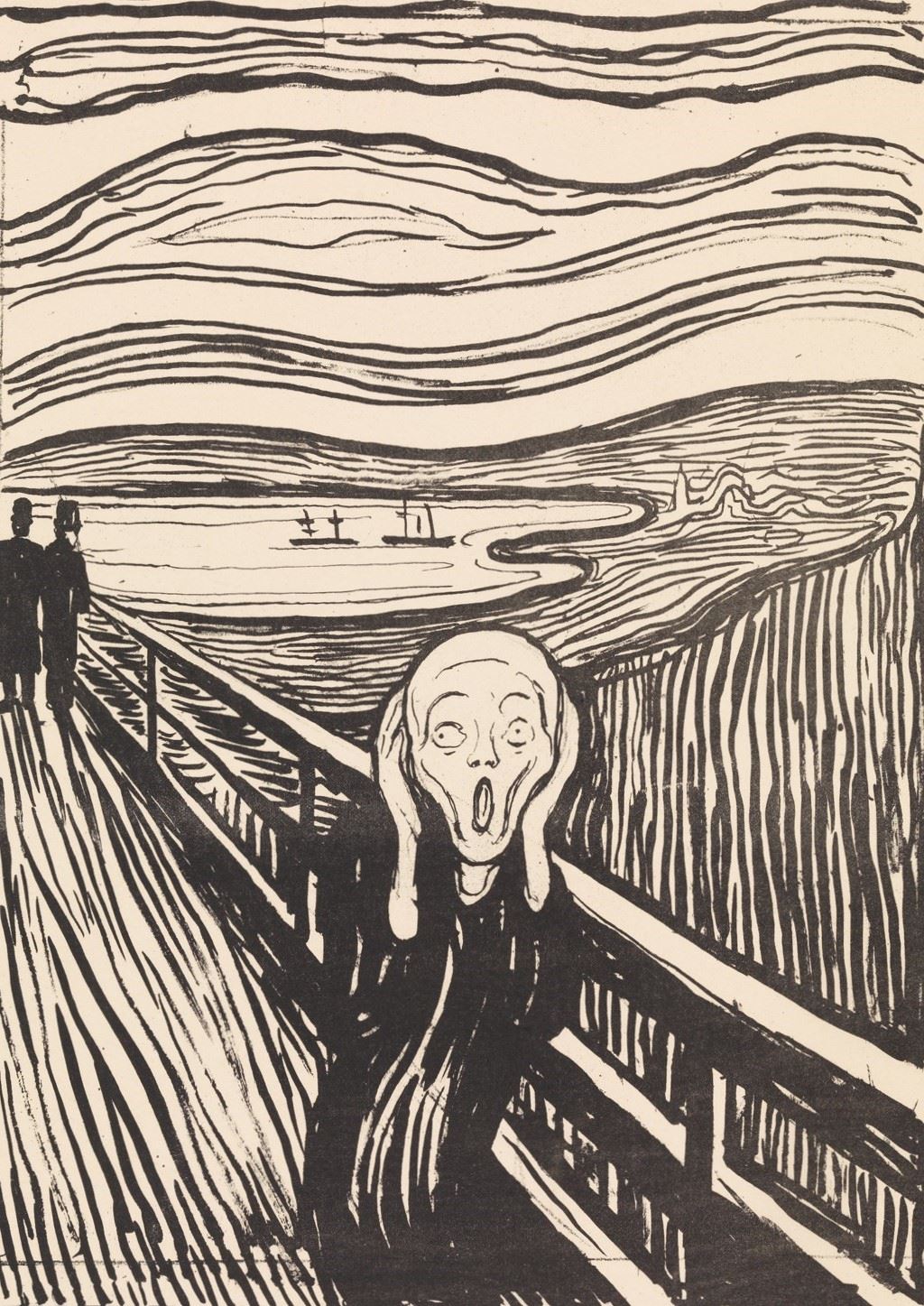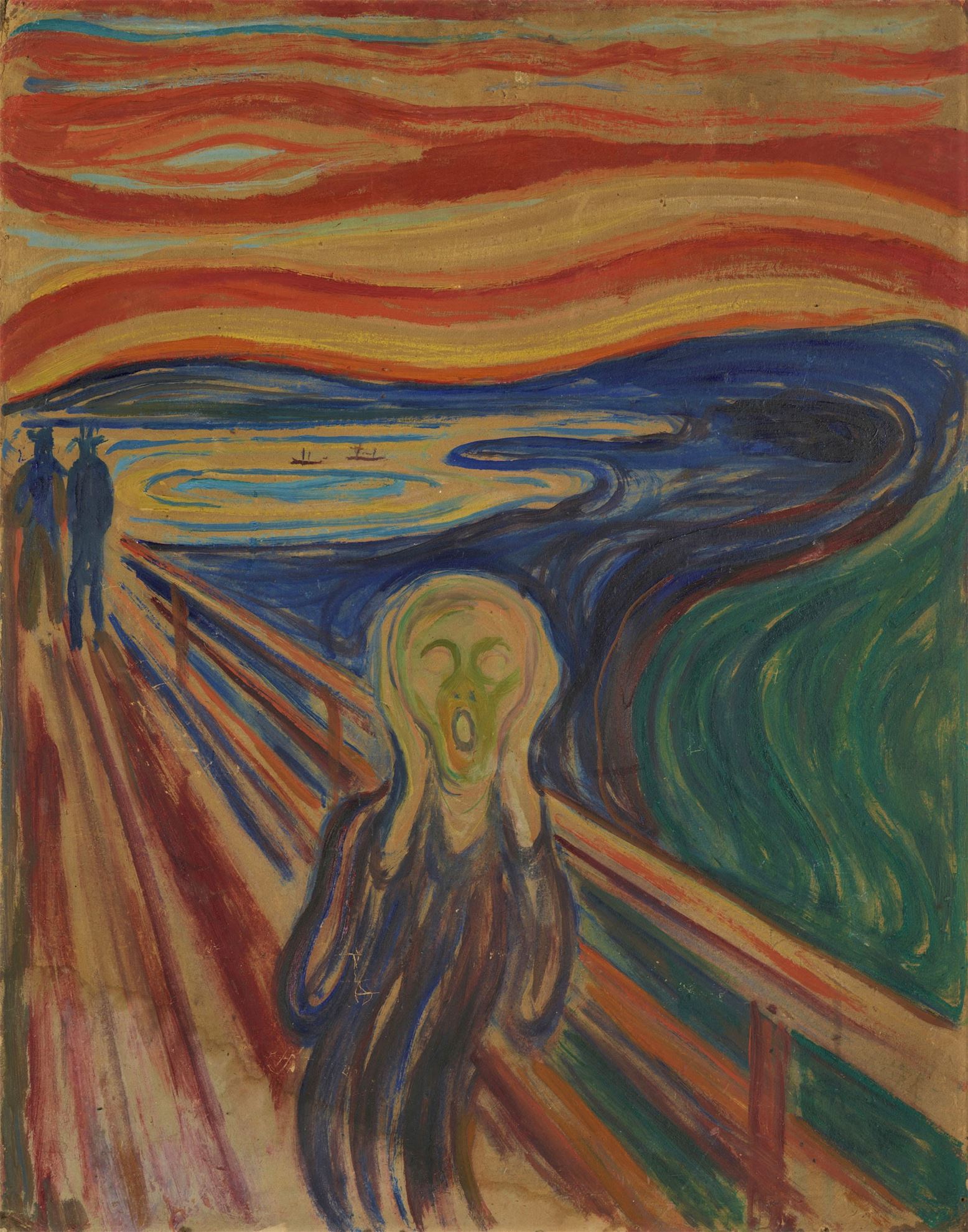 Edvard Munch’un farklı dönemlerindeki “Dörtnala Koşan At”, “Otoportre”, ve “Çığlık” adlı resimlerinden örnekler ile çalışmalarındaki detaylar, renk geçişleri ve fırça darbeleri;
